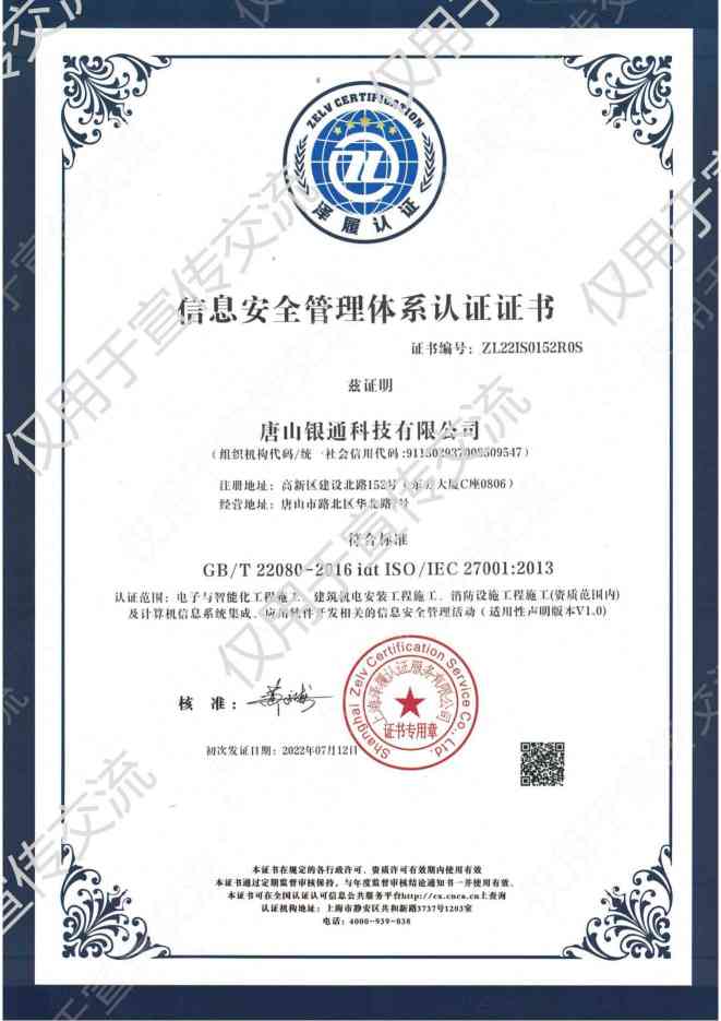 2022年 公司于2022年通过信息安全管理体系认证;推出智能安全管理系统 |