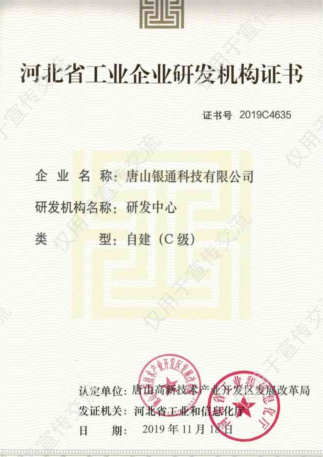 | 1998年 注册于河北省唐山市高新技术开发区 |