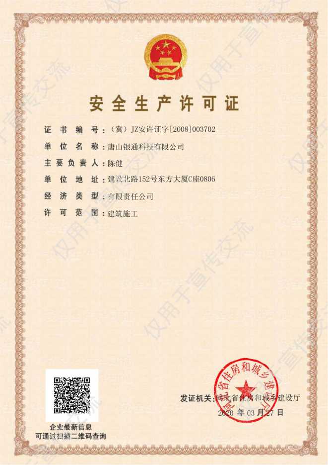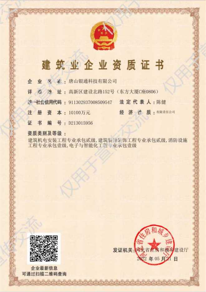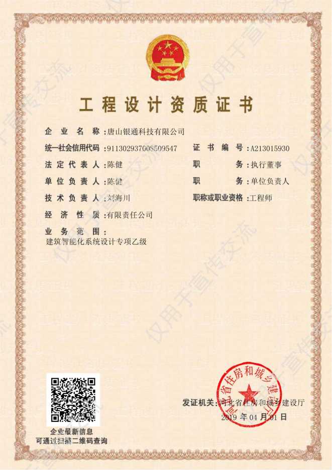 公司已取得电子工程与智能化工程专业承包一级资质,消防设施工程专业承包一级、安全防范一级资质,建筑机电设备安装工程专业承包贰级资质,建筑装饰装修工程专业承包贰级资质,城市及道路照明工程专业承包叁级,建筑智能化系统专项设计资质、2018年通过高新技术企业。安全生产许可证书,系统集成三级资质。荣获“高新技术企业”“河北省安防范系统工程设计施工维修优秀工程商”、“河北省优秀科技企业”、“守合同重信用企业”、“售后服务有保障单位”、“AAA级信用企业”等多项荣誉和称号,是河北省安防协会副理事长单位、中国演艺设备会员单位、中国石油入网会员单位。